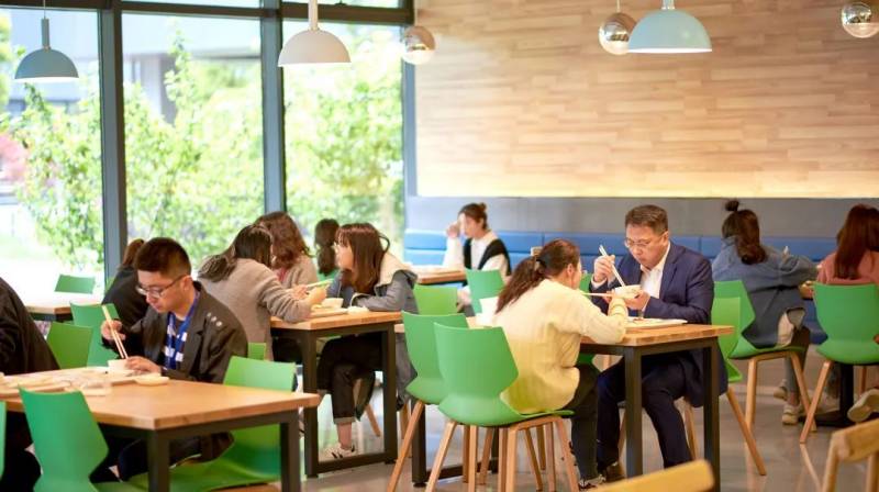中膳打造園區(qū)、寫字樓的食堂時(shí),改變傳統(tǒng)食堂布局,同時(shí)設(shè)立四人位、多人圓桌和吧臺(tái)的設(shè)計(jì),保證了高峰期時(shí)人們的用餐需求,實(shí)現(xiàn)了場景體驗(yàn)與品質(zhì)的全面升級。餐廳風(fēng)格簡約時(shí)尚,注重空間體驗(yàn)的優(yōu)化,提高人們就餐的幸福感,讓大家感受到吃飯也是一種享受和休息。