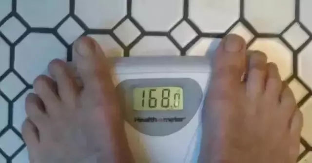 在整個(gè)實(shí)驗(yàn)的一開始,他的體重是168磅(76.2公斤)。